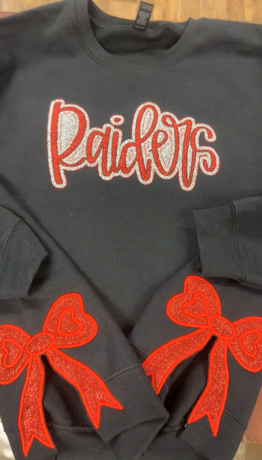 Custom Appliqué School Spirit Sweatshirt with side bows – Personalized for Any School or Team